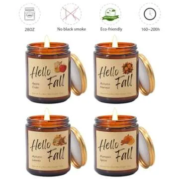 Lihome Fall Candles, Fall Decorations for Home - Fall Gifts for Women, Natural Soy Wax Scented Candles Set(4pcs)