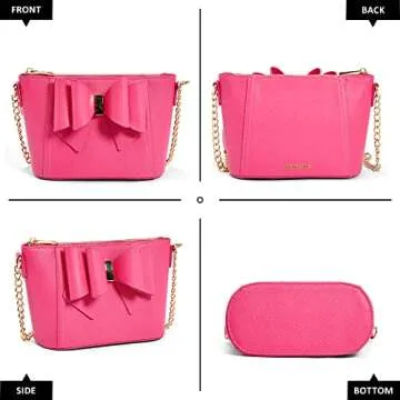 Like Dreams Womens Small Crossbody Vegan Leather Bowtie Fashion Gold Chain Handbag Purse (Fuchsia)