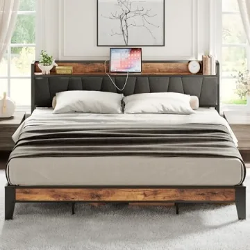 Discover the ultimate in convenience, comfort, and style with the LIKIMIO King Size Bed Frame! This innovative bed frame features a multi-functional storage headboard equipped with a charging station, making it the perfect addition to any modern bedroom. The integrated power supply includes two standard plug outlets and USB ports with a generous 5.9ft long power cord, allowing you to keep your devices charged and within easy reach while also providing a stylish platform for your glasses,...