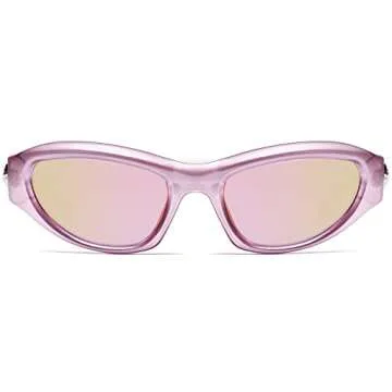 Available in an array of exciting colors including black, pink, white, blue, grey, and tortoise shell, you can choose the perfect pair that reflects your personality. The pink mirrored lenses do not just provide a stunning visual appeal; they also offer 100% UV protection, ensuring your eyes are shielded from harmful rays while looking effortlessly chic. The lightweight, sturdy frame is complemented by reinforced metal hinges, promising durability and comfort even during extended wear.