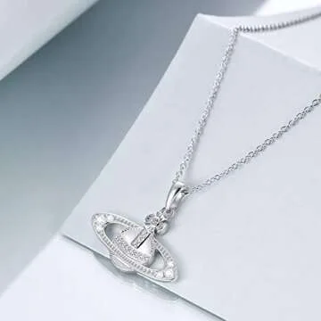The necklace features a saturn pendant that measures 1.21 by 1 inch (30.9 by 25.5 mm), perfectly suspended on a robust 18+2 inch adjustable cable chain, ensuring a perfect fit for every wearer. Its quality craftsmanship is evident in the secure clasp, providing confidence in wearability without the fear of losing it. Beyond its functionality, this necklace is a fitting expression of love and appreciation, bound to light up the face of anyone fortunate enough to receive it.