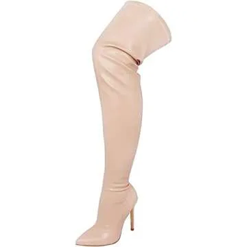 Liliana DB54 Women Suede Pointy Toe Thigh High Single Sole Stiletto Boot Nude 7