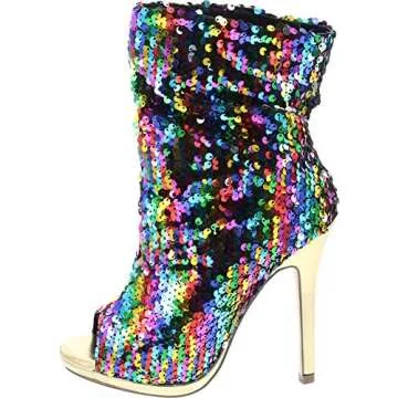 Show moreStep into the spotlight with the dazzling Liliana Maxim-12 Multi Color Sequins Peep Toe High Heel Above Ankle Bootie. This showstopper is designed for those who want to steal the limelight and make a lasting impression wherever they go. Crafted with exquisite high-quality sequins, these stunning booties capture every shimmer of light, ensuring that you become the center of attention at any event. Here’s what makes these shoes truly exceptional: they’re not just footwear; they are a glamorous statement piece that takes any outfit—from cocktail dresses to evening gowns—to the next level of chic. Whether you're dazzling on stage or gracing a party, you will turn heads with every step.