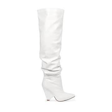 Liliana White Women Women Polyurethane Wedge Heel Slouch Thigh High Boot (NANO-2, 8.5)