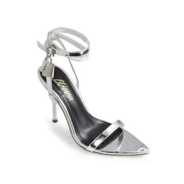 Liliana Womens Pointy Toe Stiletto High Heel Sandals Banks Silver-2A 6.5