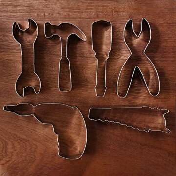 Show morePrepare for a delightful baking experience with the **LILIAO Cookie Cutters Construction Tools Cookie Cutter Set**. This set features six meticulously designed cookie cutters shaped like essential construction tools: a hammer, wrench, screwdriver, pliers, electric saw, and drill. Crafted from **food-safe stainless steel**, these cookie cutters are not just innovative in design but also safe and reliable for culinary fun. Their versatility makes them the perfect addition to your kitchen, allowing you to effortlessly cut cookie dough, fondant, sandwiches, soft fruits, and even craft clay!
