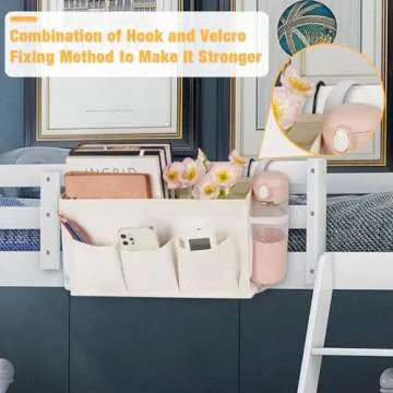 Show more If you're searching for the ideal gift that seamlessly blends functionality and style, look no further than our versatile bedside caddy organizer. This meticulously designed storage solution is perfect for those who want to keep their essentials within easy reach. With a strong bearing capacity, this caddy not only features a durable metal hook but also adjustable straps on both sides, ensuring that it stays securely in place, even when bearing heavy loads.