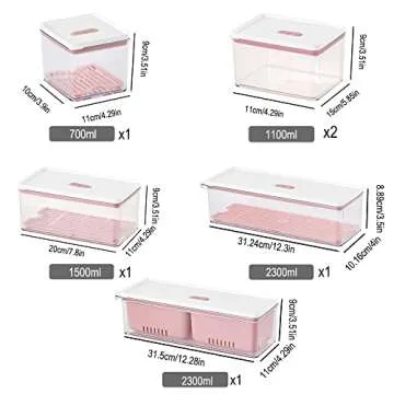 Lille Home Stackable Produce Saver, Organizer Bins/Storage Containers with Removable Drain Tray, Set of Six, for Refrigerators, Cabinets, Countertops and Pantry, BPA Free (Pink,Set of Six)