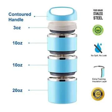 Show more Introducing the Lille Stackable Stainless Steel Thermal Compartment Lunch Box, an innovative solution for hassle-free, nutritious meals on the go. This versatile 3-tier insulated bento box is designed for both functionality and style, featuring a vibrant blue exterior that sets it apart. Crafted from high-quality food-grade stainless steel (SS304), this lunch box prioritizes your health by ensuring that it is 100% food safe, completely rust-resistant, and free from harmful BPA. Its unique design prevents the retention of flavors and scents, allowing you to enjoy different meal types without any cross-contamination. Say goodbye to single-use containers and embrace a sustainable lunch option that combines elegance and practicality!