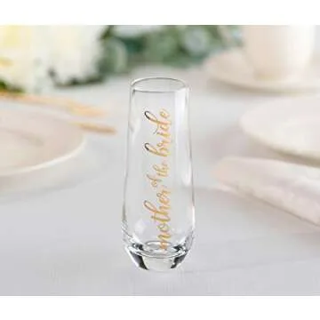 Adorned with stunning metallic gold foil writing, the glass enhances the celebratory atmosphere with its luxurious appearance. Crafted from high-quality glass, it’s not only a beautiful addition to your wedding reception but also a memorable keepsake for the mother of the bride. This keepsake will remind her of the cherished day for years to come.