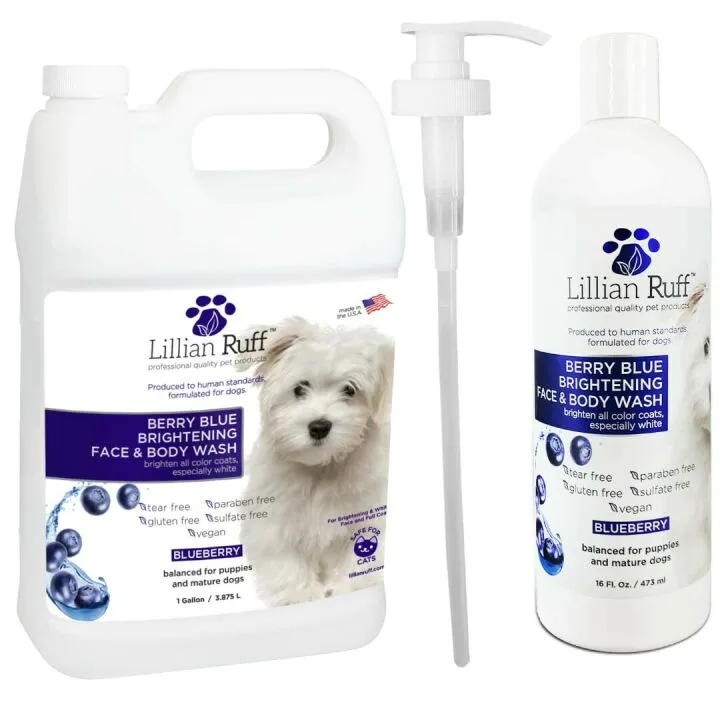 - Berry blue shampoo that eliminates tear stains and brightens the coat. - Natural fruit ingredients with a pleasant floral blueberry scent. - Tear-free formula safe for eyes. - Hydrates and relieves dry, itchy skin. - Cruelty-free, vegan, paraben-free, gluten-free, and sulfate-free. - Made in the USA with a 30-day money-back guarantee.