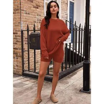 Show more Experience the blend of comfort and style with the **LILLUSORY 2 Two Piece Outfits**! This fashionable matching loungewear set features a chic oversized sweater and comfortable shorts, making it the perfect choice for every laid-back occasion. Crafted from high-quality materials, this outfit is designed for women who appreciate versatile and trendy clothing. The burnt orange color adds a delightful pop to your wardrobe, effortlessly complementing various skin tones, while its transitional nature means you can rock it throughout the seasons.