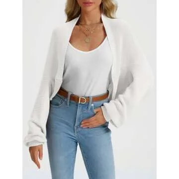 LILLUSORY Bolero Shrug Cropped Cardigan Sweater Fall Batwing Cute Casual Y2k Going Out Long Sleeve Open Front Knitted Sweaters 2025 White M