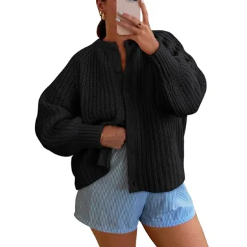 LILLUSORY Chunky Cardigan Sweaters for Women Cable Knit Cardigans Ladies Trendy Sweater Jackets Oversized Cashmere 2024 Fall Long Coat Cute Outfits Fashion Winter Clothes Black L