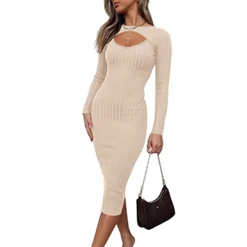 Show moreIntroducing the LILLUSORY Fall Women's Fashion Pullover Long Sleeve Mock Neck Bodycon Sweater Dress, the epitome of comfort and chic sophistication for the modern woman. Perfectly designed for the cooler months, this dress combines the plush softness of viscose and polyamide, ensuring you stay warm without sacrificing style. Its unique hollow-out design adds an flirty touch, making it an ideal choice for everything from intimate dinners to festive gatherings. The solid, rich color palette not only reflects the essence of fall but also serves to enrich your wardrobe with timeless elegance. Whether you're headed to brunch or out for a night on the town, its midi length and bodycon fit create a silhouette that flatters every body type, allowing you to exude confidence wherever you go.
