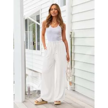 LILLUSORY Linen Wide Leg Pants: Trendy Summer Pants with Pockets for Women
