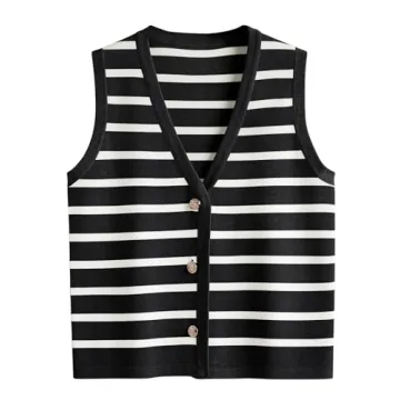 LILLUSORY Striped Sweater Vest - Stylish Women's Work & Casual Tank Top