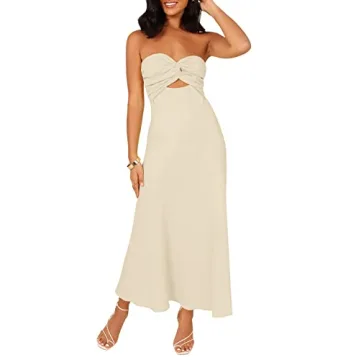 Show moreIntroducing the LILLUSORY Women Cotton Linen Y2K Strapless Midi Dress, a stunning addition to any summer wardrobe. Crafted from a blend of pure linen and cotton, this dress features a lightweight and breathable fabric that ensures unparalleled comfort, making it the ideal choice for warm weather outings. The twist knot front design adds a unique touch, creating a flattering silhouette that accentuates your curves, while the strapless bandeau tube style offers versatility and style. Perfectly paired with sandals for a beach day or dressed up with heels for a summer evening, this midi dress is your go-to for any occasion. Available in a lovely apricot hue, it effortlessly combines vintage charm with trendy aesthetics, embodying the Y2K fashion resurgence flawlessly.