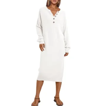 Show moreIntroducing the LILLUSORY Women Light Weight Sweaters Maxi Dress, an extraordinary blend of comfort and style, ideal for the chilly season. Made from a high-quality mix of 55% Acrylic and 45% Cotton, this luxurious sweater dress features a cozy waffle knit fabric that feels soft against the skin and ensures you remain fashionable and warm throughout winter. Its chic V-neckline with button-front detailing and relaxed, dropped sleeves define a trendy yet effortless silhouette. The A-line hem offers a flattering fit, making this dress versatile enough to dress up for an evening out or dress down for a casual day of errands.