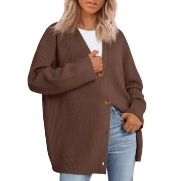 Show moreIntroducing the LILLUSORY Women Oversized Cardigan Sweater, the perfect addition to your fall wardrobe! Crafted with a cozy knit fabric that promotes both warmth and comfort, this v-neck cardigan is designed to keep you snug on those chilly evenings. The oversized, baggy slouchy style provides a relaxed fit, making it an ideal choice for layering over your favorite outfits. Featuring a stylish button front and available in a beautiful shade of brown, this cardigan combines practicality with contemporary fashion, ensuring you make a statement wherever you go.