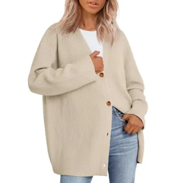 Introducing a charming oversized cardigan that is the ultimate addition to your wardrobe this season. Made from a skin-friendly, soft, and breathable fabric, this sweater promises a comfortable wear experience that is perfect for chilly days. The cozy knit fabric helps to keep you warm while still giving you a stylish look. Thanks to its fantastic elasticity, this cute sweater is designed to flatter most figures, making it a versatile choice for everyday wear. The cardigan features a v-neck design, long sleeves,...