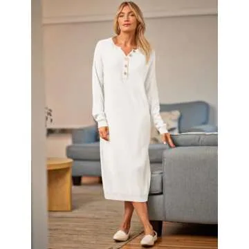 Show moreIntroducing the LILLUSORY Women Oversized Sweater Maxi Dress, an essential addition to your fall wardrobe that seamlessly combines warmth, style, and comfort. Crafted from a high-quality blend of 55% Acrylic and 45% Cotton, this dress features a charming waffle knit texture that not only looks sophisticated but also feels cozy against the skin. Its relaxed dropped sleeves and elegant V-neckline with button-front detailing effortlessly enhance the overall aesthetic, making it suitable for a variety of occasions. The A-line hem adds a modern, chic touch, ensuring you'll turn heads wherever you go with this versatile piece.