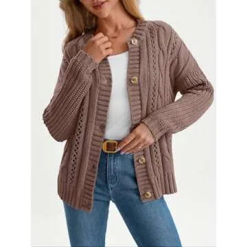 LILLUSORY Women's Cardigan Sweaters Cable Knit Crochet Cotton Fall Jackets Button Up Chunky Trendy Outfits Nutmeg L
