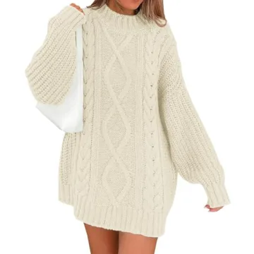 Show more Introducing the LILLUSORY Women's Crewneck Oversized Sweater Dress, a staple for your autumn and winter wardrobe that combines fashion and functionality seamlessly. This delightful pullover is meticulously crafted with a luxurious cable knit, designed to provide both style and substantial warmth. The soft fleece interior embraces you, keeping the chill of the season at bay while ensuring you look effortlessly chic. With an oversized silhouette, this piece flatters every body type and allows for movement, enhancing your comfort whether you’re staying in or stepping out.