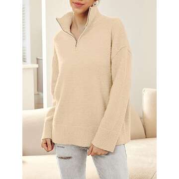 LILLUSORY Women's Fall Fashion Clothes Outfit 2024 Oversized Half Zip Pullover Sweaterss Fuzzy Knit Chunky Warm Sweaters Apricot