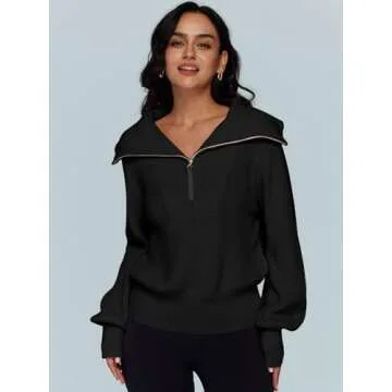 LILLUSORY Women's Half Zip Pullover Trendy Sweatshirts Maternity 2023 Fall Sweater Tops 100% Cotton Knit Y2K Hoodie Black
