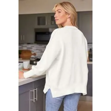 The oversized design of this sweater is tailored to flatter all body types, ensuring everyone can enjoy its stylish silhouette. The side split hemline and vertical grain cuffs provide a trendy touch while maintaining comfort, allowing for easy movement whether you're lounging at home or out with friends.