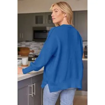 LILLUSORY Women's Oversized Batwing Sweaters 2024 Fall Outfits Crewneck Ribbed Knit Side Slit Trendy Pullover Tops Blue XL