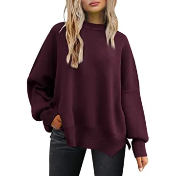 LILLUSORY Women's Oversized Batwing Sweaters - Trendy Wine Red Pullover