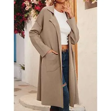 Show more Introducing the LILLUSORY Women's Oversized Cardigans Knit Fall Jackets, a harmonious blend of comfort and style designed to elevate your autumn wardrobe. This fashionable outerwear masterpiece boasts a striking shawl collar that adds a sophisticated touch to any outfit, complemented by two spacious front pockets for practicality. Its mid-length open front design not only ensures ease of wear but also makes it a versatile layering piece, perfect for transitioning from fall to winter. Crafted from a luxurious mix of premium fabric and cashmere, this sweater coat is as kind to your skin as it is fashionable, ensuring you stay warm and chic on brisk days.