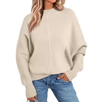 LILLUSORY Women's Oversized Mock Neck Sweaters Trendy Pullover 2025 Casual Outfits Knit Batwing Sleeve Winter Tops Cream M