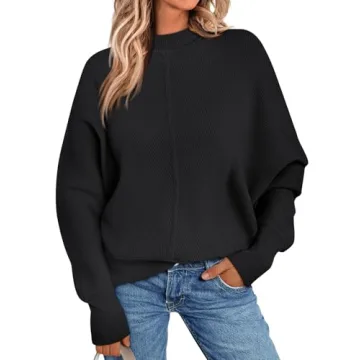 LILLUSORY Women's Oversized Mock Neck Sweaters Trendy Pullover 2025 Casual Outfits Knit Batwing Sleeve Winter Tops Black XL