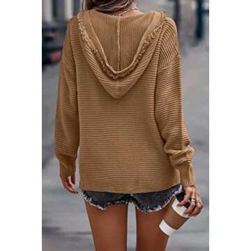 LILLUSORY Women's Plus Size Sweaters 2022 Fall Ribbed Knit V Neck Long Sleeve Hooded Hoodie Casual Shirts Pullover Tunic Tops Khaki