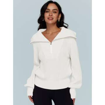 LILLUSORY Women's Pullover Zip Up Sweat Shirt Fall Fashion Short Soft Sweater Lightweight Knit Hoodie Winter Outfits White