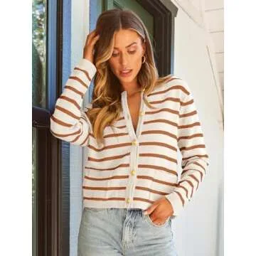 Indulge in a cardigan that is as functional as it is fashionable. With its vibrant stripes and elegant buttons, it's bound to draw compliments wherever you go. Experience the perfect combination of style and comfort with our knitted cardigan sweater, designed for the modern woman on the go.