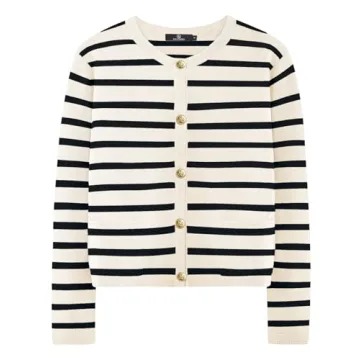 Show moreThe LILLUSORY Women's Striped Cardigan Sweaters blend style and comfort seamlessly, making them a must-have addition to your wardrobe. Featuring eye-catching fashionable gold buttons, this cardigan not only adds a touch of elegance to your outfit but also ensures that you stand out in any crowd. Crafted from a soft and lightweight knit, it's perfect for layering during various seasons — whether you need a cozy cardigan in the spring, a chic addition on a cool summer evening, or a stylish shacket in the fall. Its versatility shines bright all year round, as it effortlessly transitions into winter wear, serving as a light coat paired with your favorite pullover sweater.
