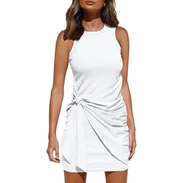 Show moreIntroducing the ultimate summer wardrobe essential, the LILLUSORY Women’s Summer Tie Wrap Tank Mini Dress! This trendy piece is crafted with a flattering form-fitting silhouette and a classic crew neckline that is designed to highlight your figure beautifully. With its flexible waist tie, you have the freedom to customize your fit, ensuring that you feel confident and comfortable no matter the occasion. Perfect for everything from casual brunches to elegant evenings out, this dress effortlessly combines style and comfort—making it a must-have in any fashionista's collection.