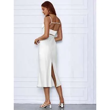 LILLUSORY Womens 2023 Summer Midi Corset Cocktail Satin Silk Slip Bustier Dresses White Graduation Beach Sexy Night Out Party Dress