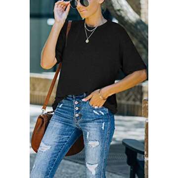 Show moreIf you're in search of the perfect blend of comfort and style, look no further than the LILLUSORY Women's Casual T-Shirts. Designed with today’s modern woman in mind, this half short sleeve tunic is not just a hassle-free clothing choice, but also a sophisticated addition to your wardrobe. Available in a trendy black, it complements any outfit, making it a versatile piece for any occasion. Crafted from high-quality materials, it ensures a soft touch against the skin while providing a flattering fit that works for all body types, including plus sizes. Whether you're dressing up for a casual outing or down for a relaxed day at home, this blouse checks all the boxes you need in a staple top.
