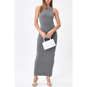 LILLUSORY Womens Cocktail Dresses Long Summer Tank Sexy Sleeveless Basic Prom Bodycon Party Maxi Backless Midi Dress Grey