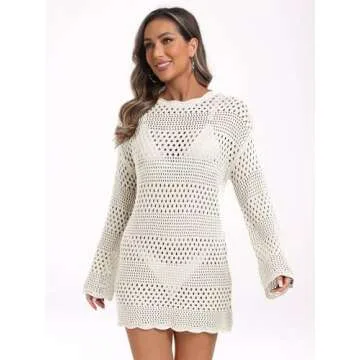 LILLUSORY Womens Cover Ups Swimsuit Crochet Summer Bathing Suit Swimwear Swim Beach 2024 Spring Fashion Dresses, Small, White