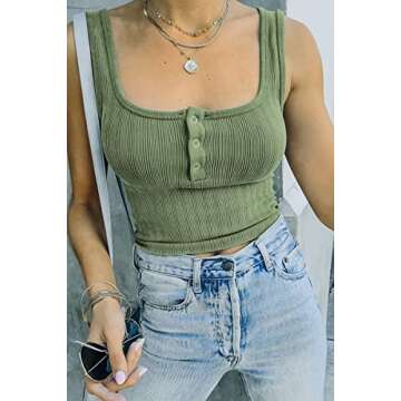Show more The LILLUSORY Womens Cute Summer Crop Top is the ultimate fashion staple for style-savvy teen girls looking to make a statement this summer. Whether you're planning a casual outing or enjoying a fun night out with friends, this trendy cropped tank top is designed to turn heads. Featuring a fashionable square neck and sexy henley style, this sleeveless top is perfect for showcasing your summer glow. Its stylish ribbed texture adds the perfect touch to your casual outfits, while the chic white color keeps it fresh and versatile for any occasion.