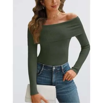 LILLUSORY Womens Off The Shoulder Sweater Fall Long Sleeve Going Out Y2k Tops Winter Date Night Outfits, DarkGreen, S