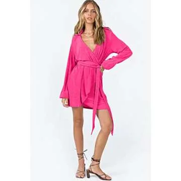 Show moreStep into elegance with the LILLUSORY Womens Plus Size Dress, designed to flatter your figure and make a statement at any occasion. This stunning pink fall wrap cocktail dress comes with long sleeves and a deep V-neck, accentuating your neckline beautifully while providing a comfortable fit. The tie waist feature allows you to cinch in your waist for a more defined silhouette, ensuring you look and feel fabulous. Made from high-quality, breathable fabric, this dress guarantees both style and comfort throughout your evening events.
