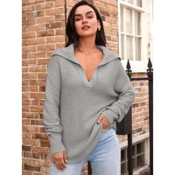 LILLUSORY Womens V Neck Oversized Sweaters Long Batwing Sleeve Asymmetrical Knit Pullover Fall Fashion 2025 Grey L