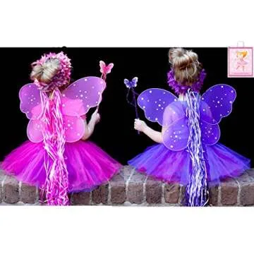 Lilly and the Bee Novelties 7pc Hot Pink & Purple Fairy Princess Costumes with Reversible Tutu Plus Gift Bag